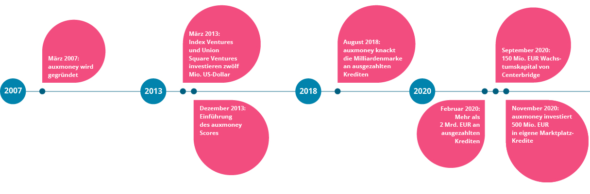 Übrigens: Der Name auxmoney setzt sich aus den beiden Wörtern auxiliari = helfen und money = Geld zusammen. Folglich: Mit Geld unterstützen.